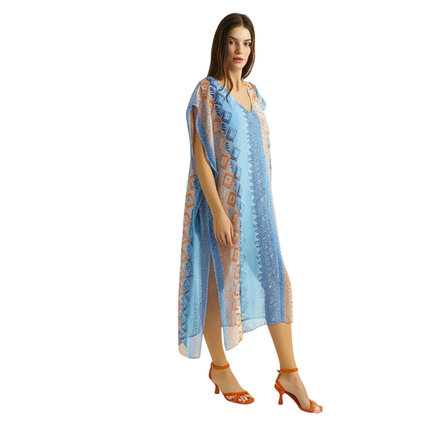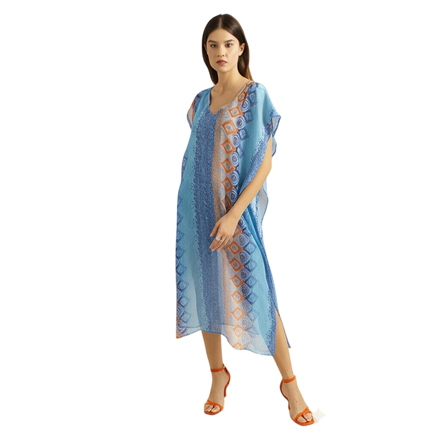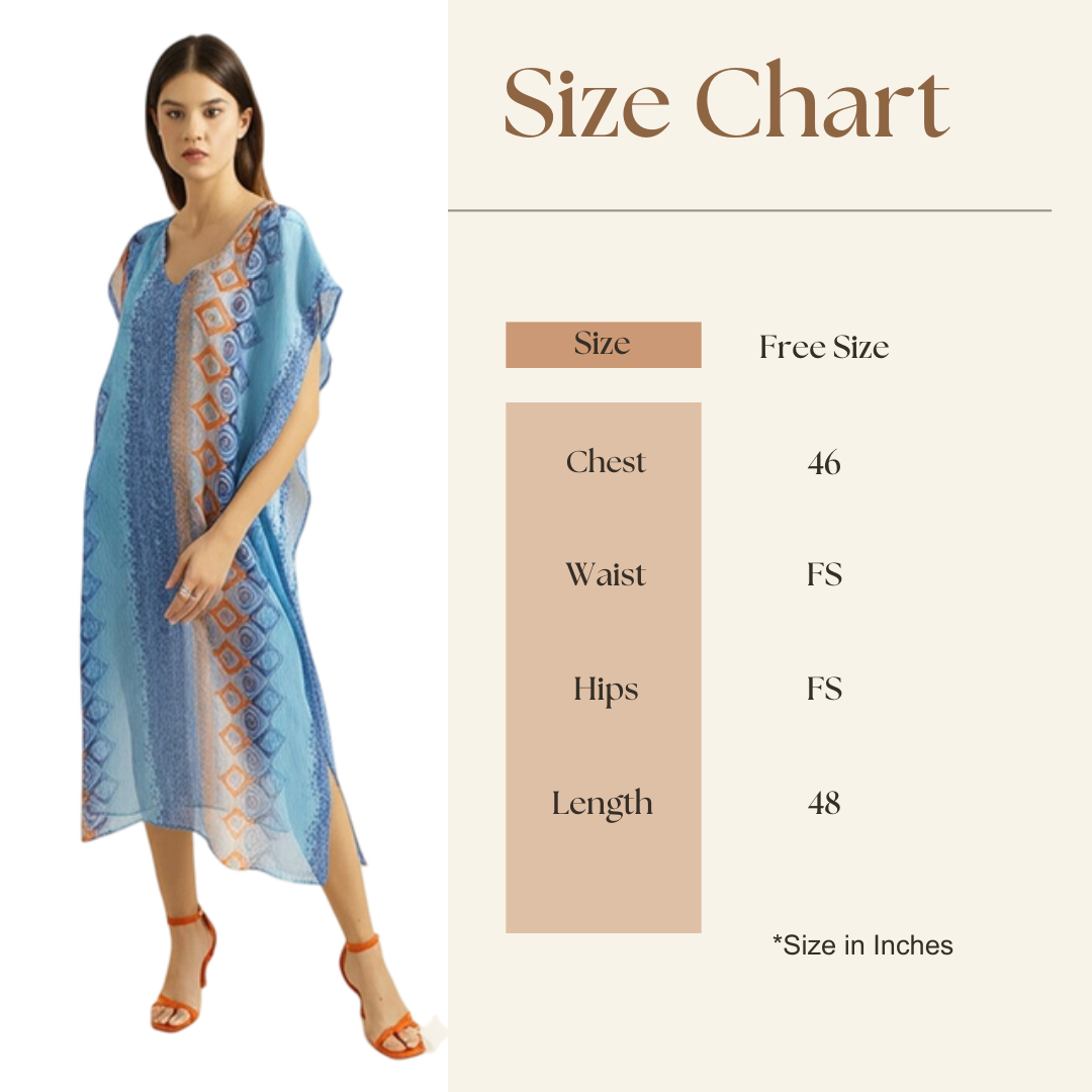Bedazzle Women’s Printed Kaftan Tunic Dress | Soft Chiffon V-Neck Loose Fit Caftan Top | Elegant Resort Wear Beach Cover Up | Stylish Summer Maxi Dress