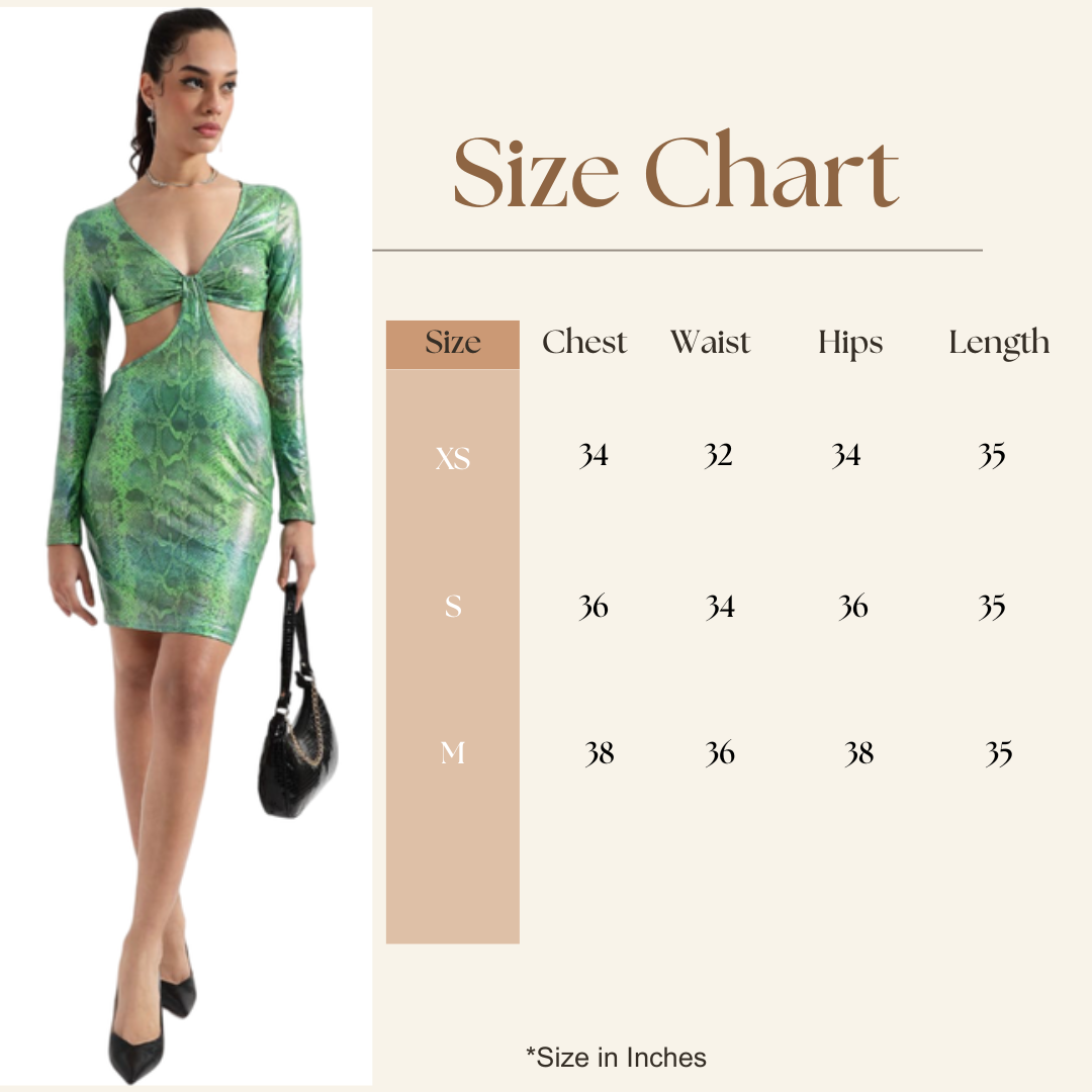 Unleash your wild side with the Bedazzle Green Snakeskin Cutout Mini Dress—the ultimate fusion of fierce style and comfortable sophistication. Our brand values—Comfort, Style, Affordability, Quality, and Customer Satisfaction—are woven into every detail. This is more than a dress; it’s a statement. Crafted with a smooth, sculpted fabric that mimics the look of sleek PU leather, the vibrant green snakeskin print commands attention. The defining cutout bodycon fit is strategically placed to be incredibly flattering and modern, perfectly capturing the essence of latest trending fashion. Designed for movement and confidence, this stylish wear keeps you comfortable without compromising on impact. At Bedazzle, we make luxury relatable, allowing you to embrace your boldest looks for every glamorous night out.