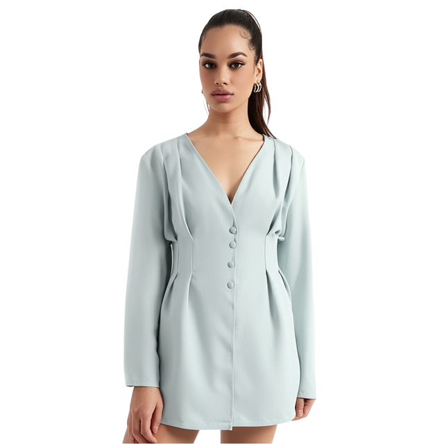 Step out in fresh, refined elegance with the Bedazzle Tailored Blazer Dress in a stunning Pastel Green hue. This piece is the ultimate embodiment of our brand values: Comfort, Style, Affordability, and Quality.