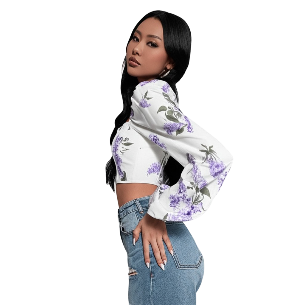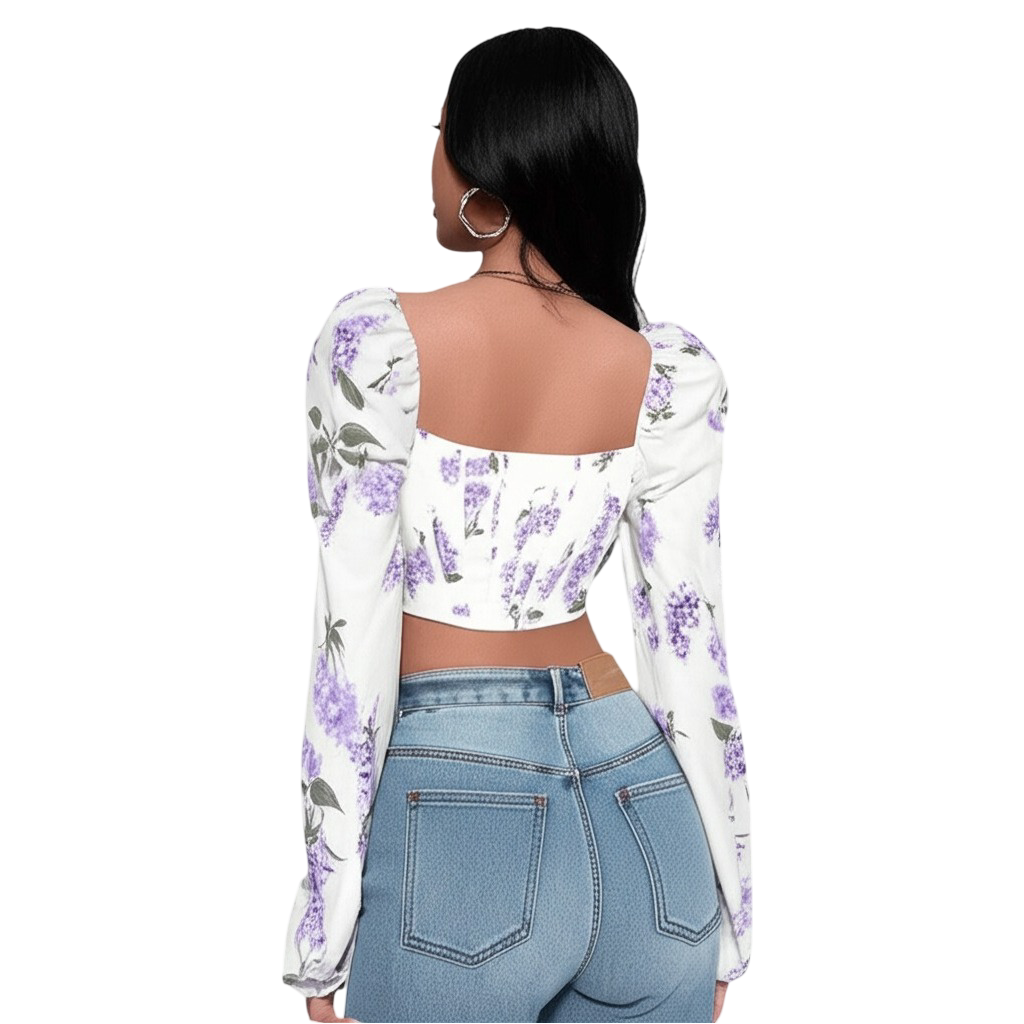 Step into the spotlight with the latest trending fashion from Bedazzle. Our elegant floral print square neck top is a masterpiece of modern design and timeless Style. The rich purple floral print is vibrant and sophisticated, set against a crisp white backdrop, making it an instant showstopper for any season.