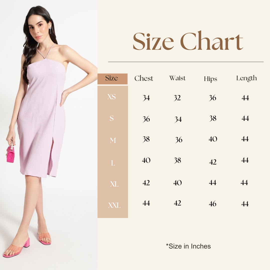 Step into the spotlight with the Bedazzle Halter Neck Sheath Dress, a piece where modern elegance meets supreme comfort. This stunning lavender dress is tailored from a premium sculpted crepe fabric that provides both structure and a smooth, soft feel. The fabric molds to your figure, ensuring a flattering and confident fit every time.