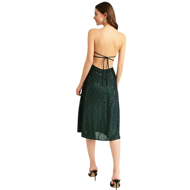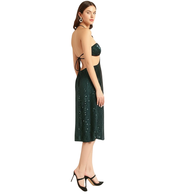 Be the first to review “Bedazzle Sequin Midi Dress for Women | Emerald Green Halter Criss-Cross Cutout Cocktail Party Dress | Elegant Bodycon Stylish Wear for Evening”