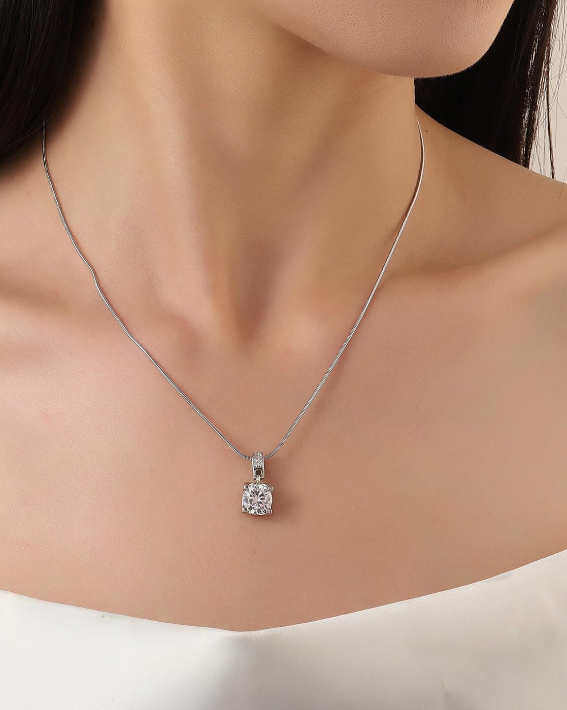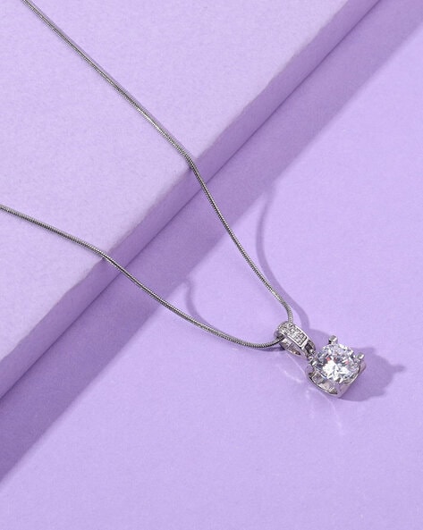 Our Silver Plated Solitaire Pendant is designed for the woman who finds beauty in simplicity. At the heart of this piece lies a brilliant, lab-created American Diamond, meticulously faceted to reflect light with breathtaking fire. Suspended from a fluid, high-polish snake chain, the pendant creates a flattering silhouette that grazes the collarbone with effortless grace.