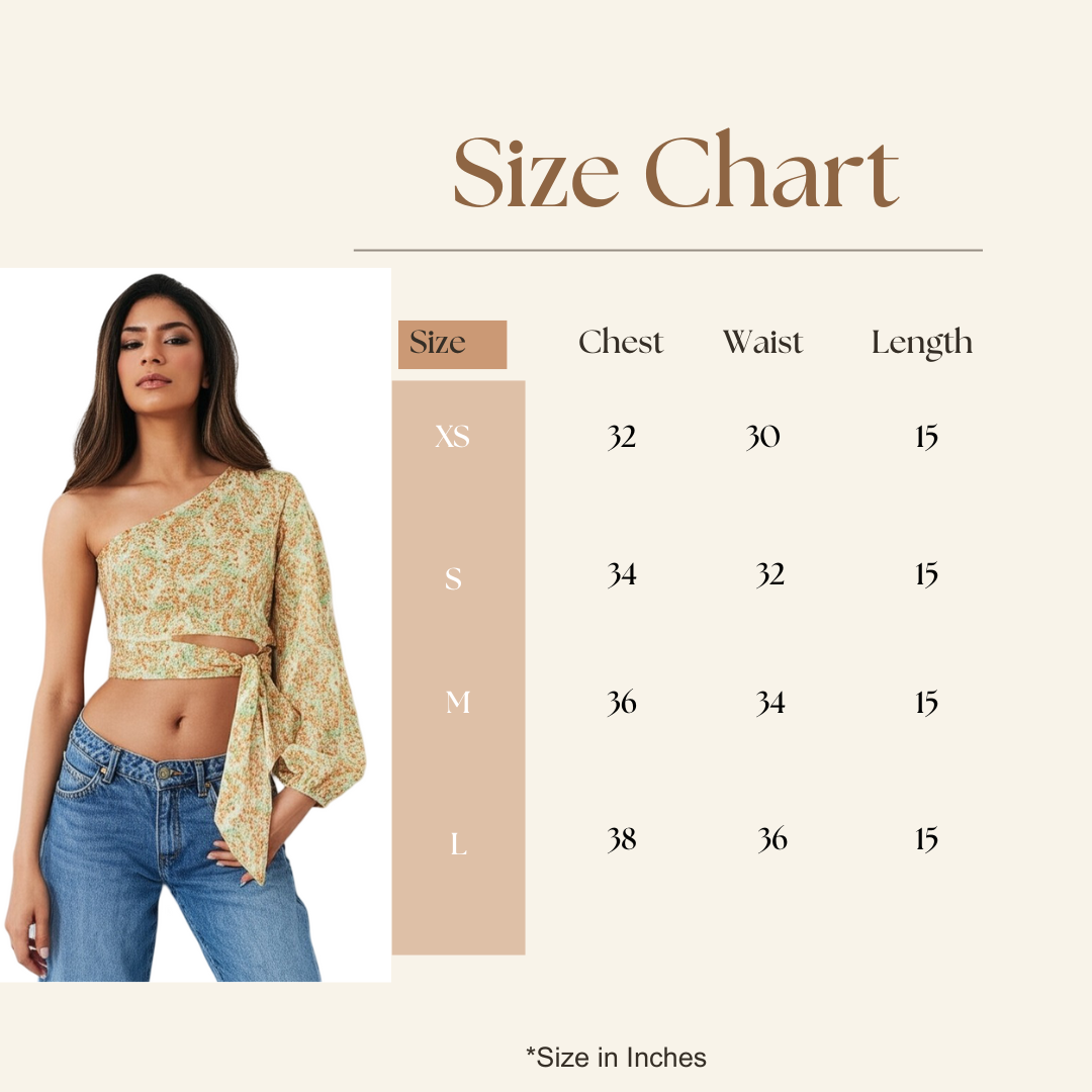 Bedazzle Women’s Printed One Shoulder Crop Top | Elegant Balloon Sleeve or Sleeveless Blouse | Stylish Tie-Waist Cutout Western Wear for Party & Summer Occasion | Comfortable Fit