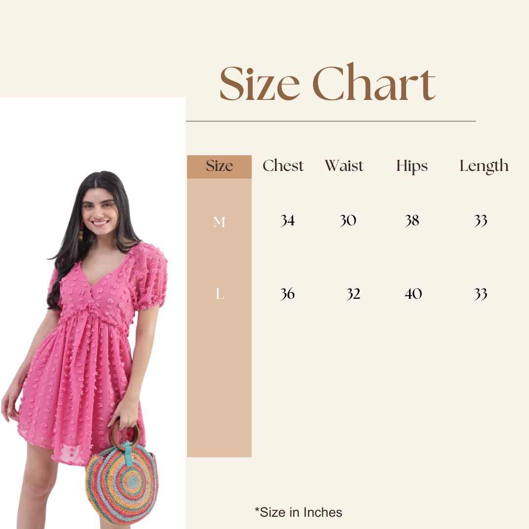 Embrace playful sophistication with the Bedazzle Hot Pink Swiss Dot Mini Dress. This garment is a joyful expression of style and latest trending fashion. Crafted from a premium, soft, breathable Chiffon fabric, it features subtle, charming Swiss Dots that add texture and depth. Our commitment to quality ensures a truly luxurious and smooth feel, making all-day comfort a guarantee.