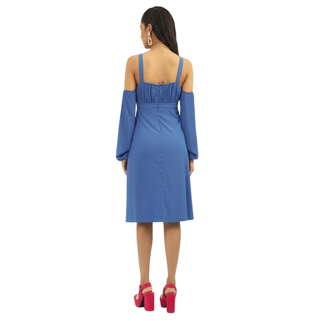 Step into the spotlight with the Bedazzle collection—a fusion of daring Style and assured Comfort. Our royal blue cold shoulder midi dress is designed for the woman who owns her elegance and showcases her confidence, embodying our core value of Quality.