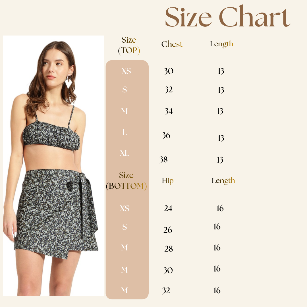 Step into the sunshine with the Bedazzle Floral Co-ord Set, where effortless elegance meets modern comfort. This stunning two-piece ensemble features a delicate, smocked spaghetti strap top paired with a flirtatious mini wrap skirt, designed to make you feel like the best version of yourself.