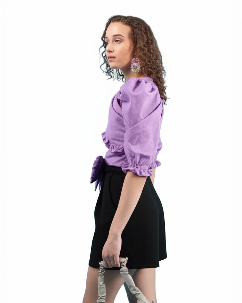 Elevate your fashion game with the Bedazzle Lavender Ruffle Crop Top—the ultimate fusion of Comfort, Style, and Affordability. This exquisite stylish wear piece is designed for the modern woman who refuses to compromise on elegance. Crafted from a soft, breathable fabric, this top feels incredibly smooth and light, making it a perfect summer shirt.