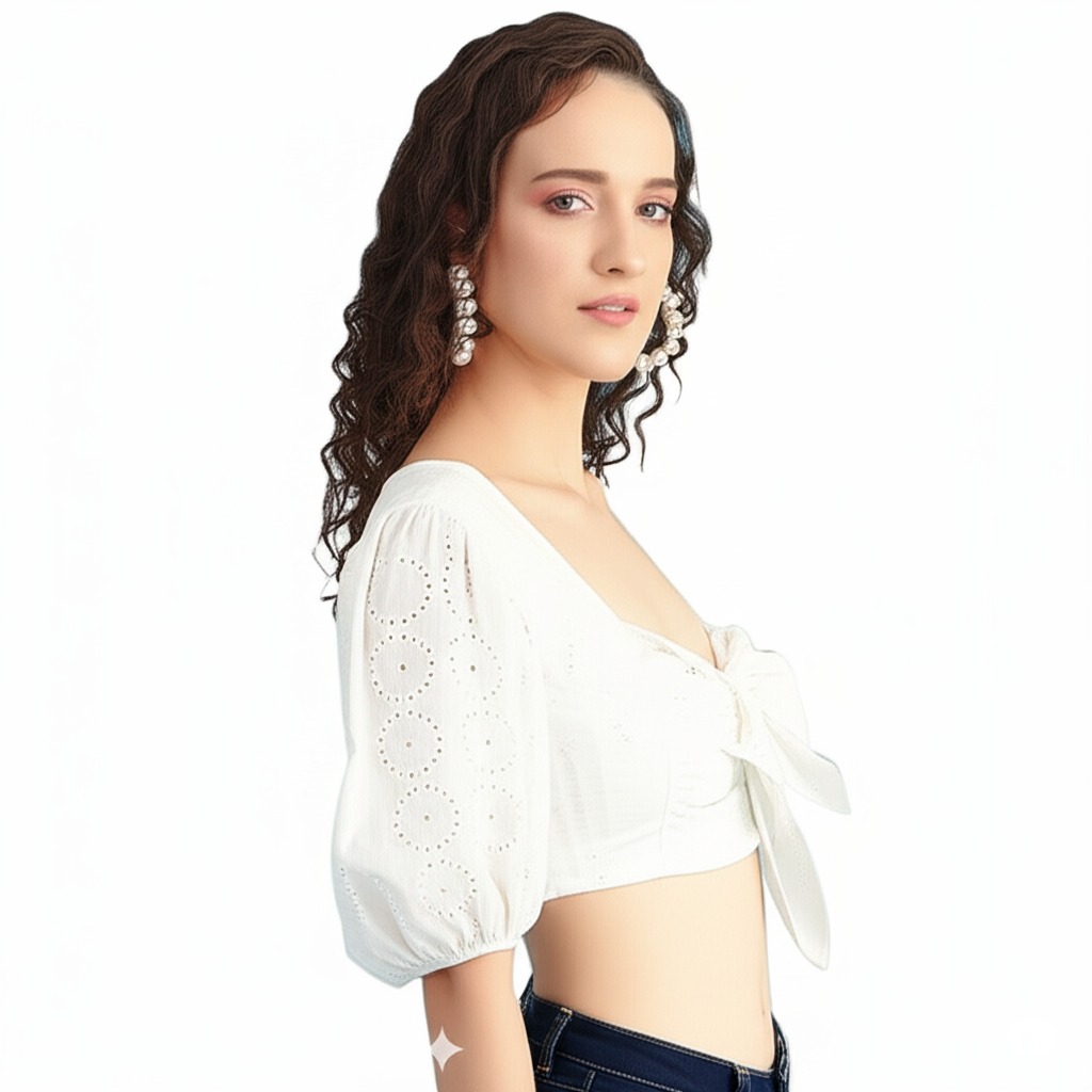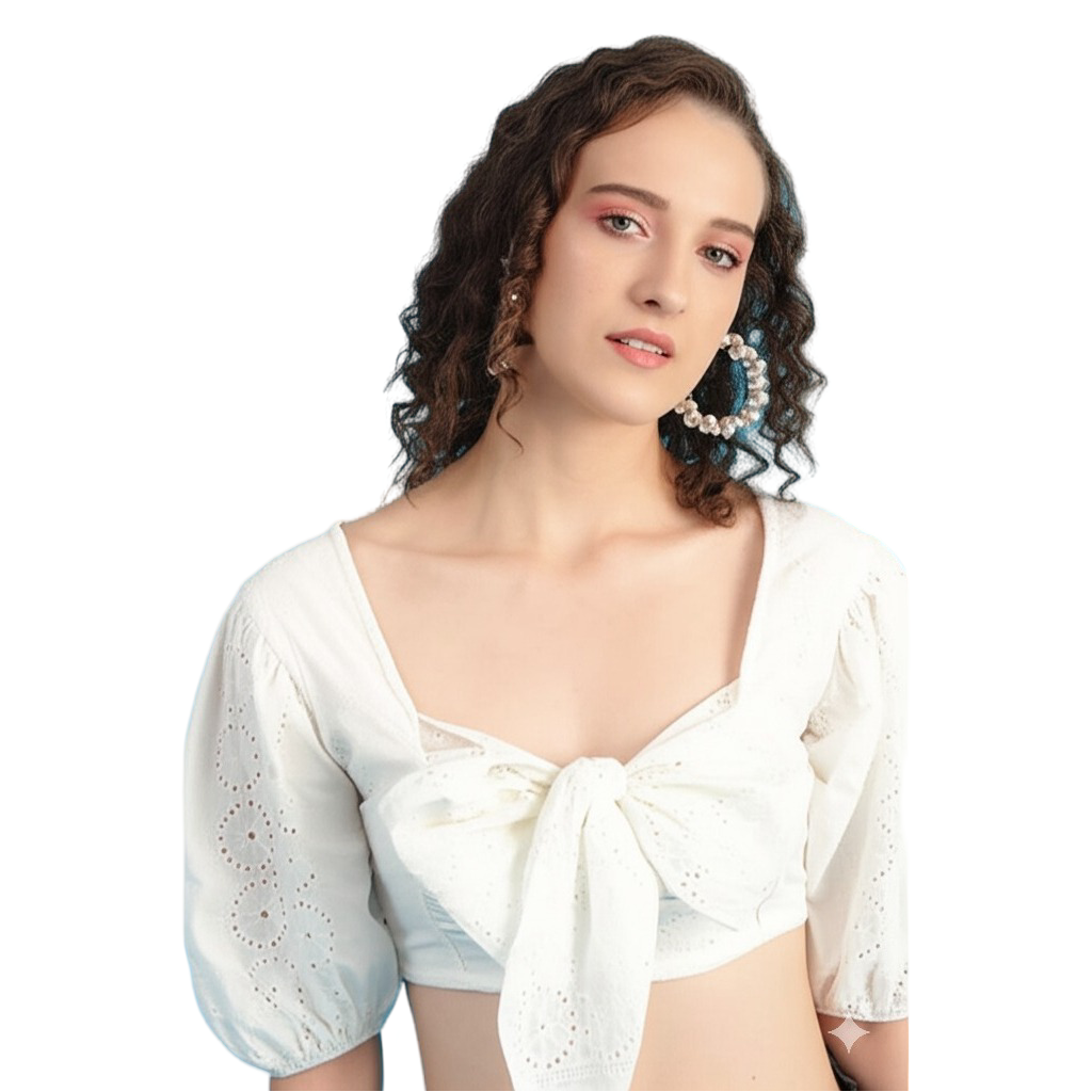 Discover the timeless charm and modern flair of the Bedazzle White Eyelet Crop Top—a perfect expression of Comfort, Style, and Affordability. This exquisite ladies top is crafted from premium, breathable cotton featuring delicate broderie anglaise embroidery, making it feel incredibly soft and smooth against the skin—your ideal summer cotton top.